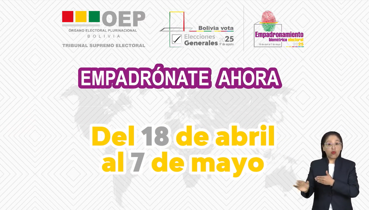 EMPADRÓNATE AHORA PARA QUE PARTICIPES DE LAS ELECCIONES GENERALES 2025 ver detalles...